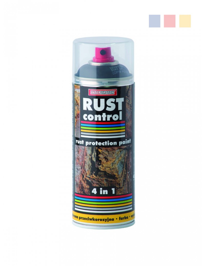 Rust Control to aktywna ochrona antykorozyjna dzięki efektywnemu systemowi lakierowania 4 w 1. Preparat charakteryzuje się szybkim schnięciem, wysokim stopniem krycia przy jednej warstwie, bardzo dobrą przyczepnością oraz efektywnym gruntowaniem. Spray półmatowy dostępny w 4 odcieniach.