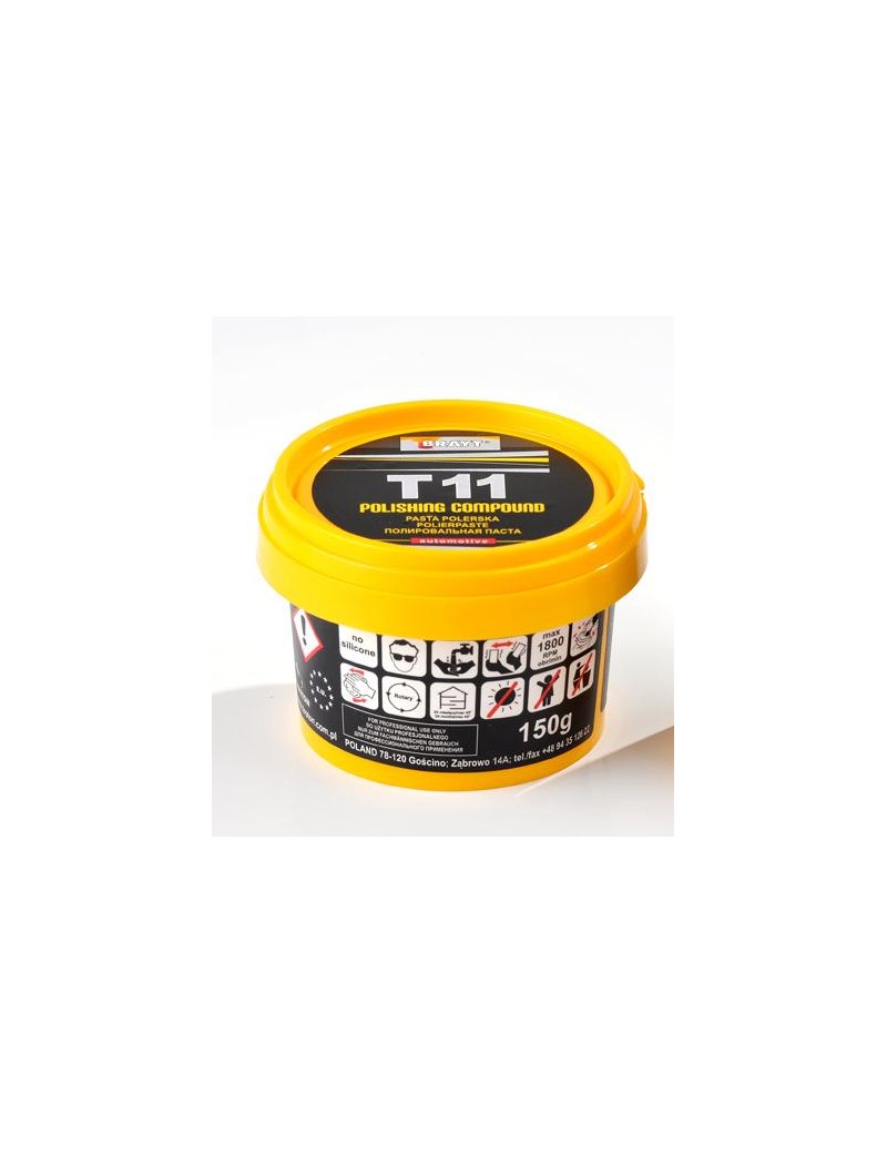 Pasta polerska BRAYT T11 zawiera wysokiej jakości minerały polerujące, co gwarantuje szybkie usuwanie defektów i osiąganie połysku za pomocą jednoetapowego procesu. Usuwa defekty po papierze P1500.